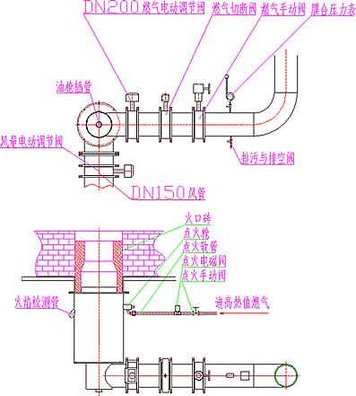 用戶必須配備4-6kg/cm2的壓縮空氣,同時(shí)配備點(diǎn)火用的液化氣罐,作切斷燃?xì)夂忘c(diǎn)火用。燃燒器的火口磚用戶必須按照供方提供的圖紙來(lái)制作。