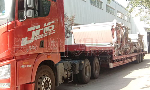 已是秋高氣爽,艷陽灑照,惠風和暢,而高濕廢渣的脫水處理仍不能怠慢,今日,鄭州鼎力銷往飼料廠的兩臺大型紅薯渣帶式壓濾機同車起運,按時發(fā)貨。